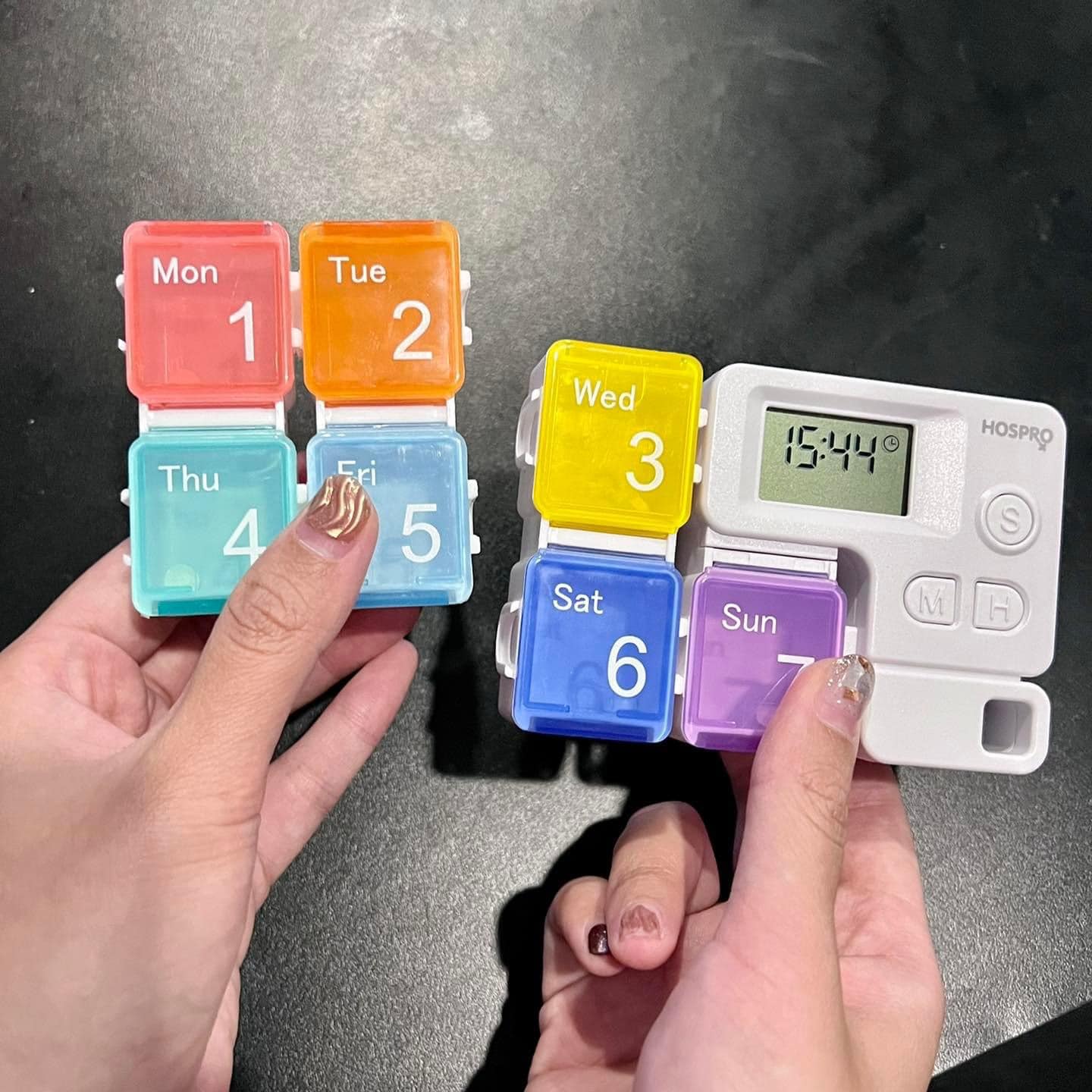🗓️ 7 حجرات تنظيمية: يأتي هذا المنظم الأسبوعي مع أزرار تشير إلى أيام الأسبوع بالحروف. يتميز بمرونة عالية، حيث يمكن استخدامه كقطع منفصلة حسب الحاجة، أو فصل مؤقت الدواء واستخدام صندوق الحبوب وحده.